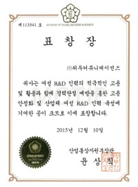 한국여성벤처협회 표창장