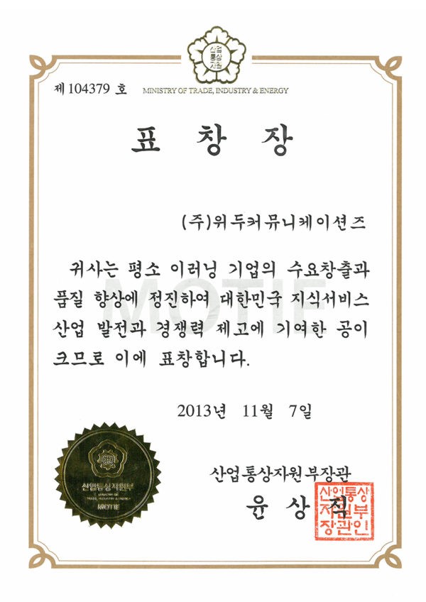 이러닝 기업의 수요 창출과 품질 향상 페이지 정보 작성자 WeDu 댓글 0건 조회 5,930회 작성일 19-05-30 19:32 본문 2013-11-07 표창장 제 104379호 이러닝 기업의 수요 창출과 품질 향상 산업통상자원부장관 윤상직 List Previous한국여성벤처협회 표창장 19.05.30 Next이러닝 콘텐츠 품질 인증 우수 심사 19.05.30
