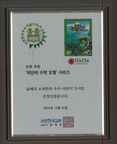2020 소년한국 우수 어린이 도서 선정 페이지 정보 작성자 WeDu 댓글 0건 조회 9,717회 작성일 21-12-31 13:00 본문 2020-12-30 '리안의 수학 모험' 시리즈 우수 어린이 도서 선정 소년한국일보 대표이사 List Previous2021 4IR AWARDS 대상 21.12.31 Next2020 기술혁신 우수기업 21.12.31