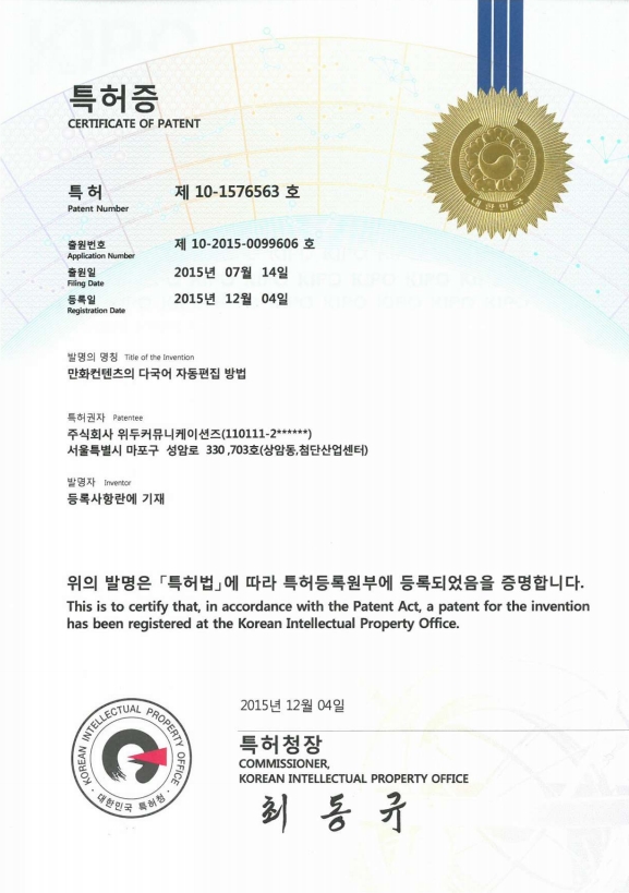 [한국/특허] 만화 컨텐츠의 다국어 자동 편집 방법 페이지 정보 작성자 WeDu 댓글 0건 조회 6,416회 작성일 19-05-30 18:49 본문 2015-07-14 특허 10-2015-0099606 만화 컨텐츠의 다국어 자동 편집 방법 List Previous[한국/특허] 전자서적과 연동되는 게임의 제공 장치 19.05.30