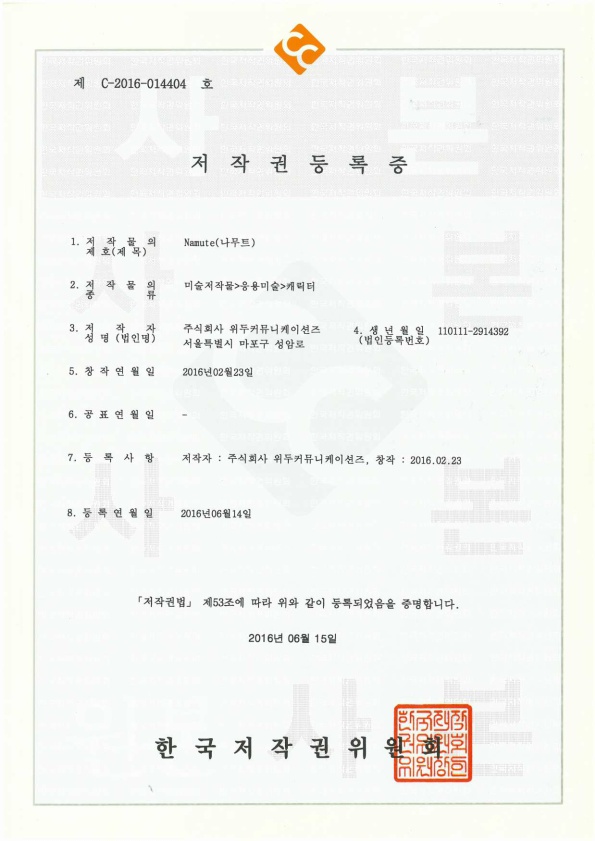 [한국/저작권] 나무트 페이지 정보 작성자 WeDu 댓글 0건 조회 6,290회 작성일 19-05-30 19:08 본문 2016-06-14 저작권 C-2016-014404 나무트 / 미술저작물>응용미술>캐릭터 List Previous[한국/저작권] 리안 19.05.30 Next[한국/저작권] 길리 19.05.30